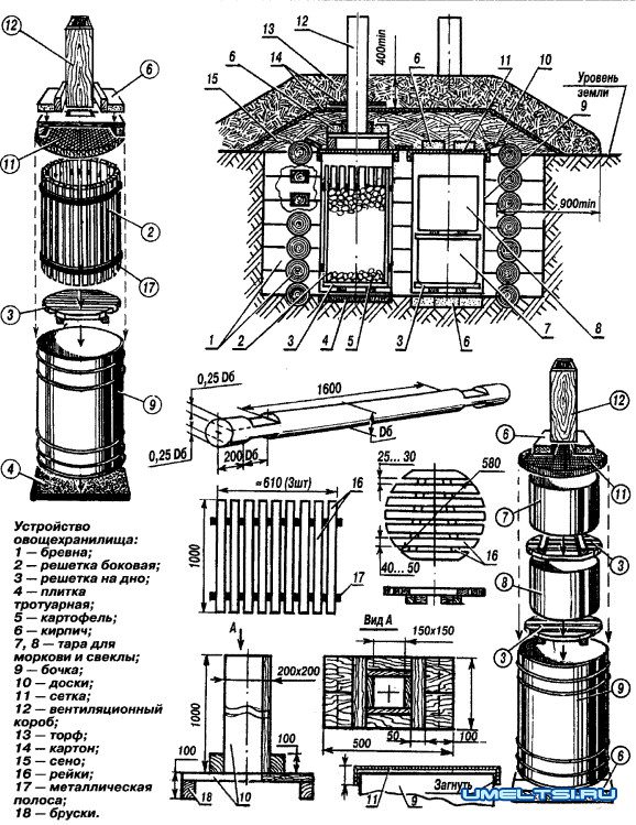 Устройство, чертежи овощехранилища
