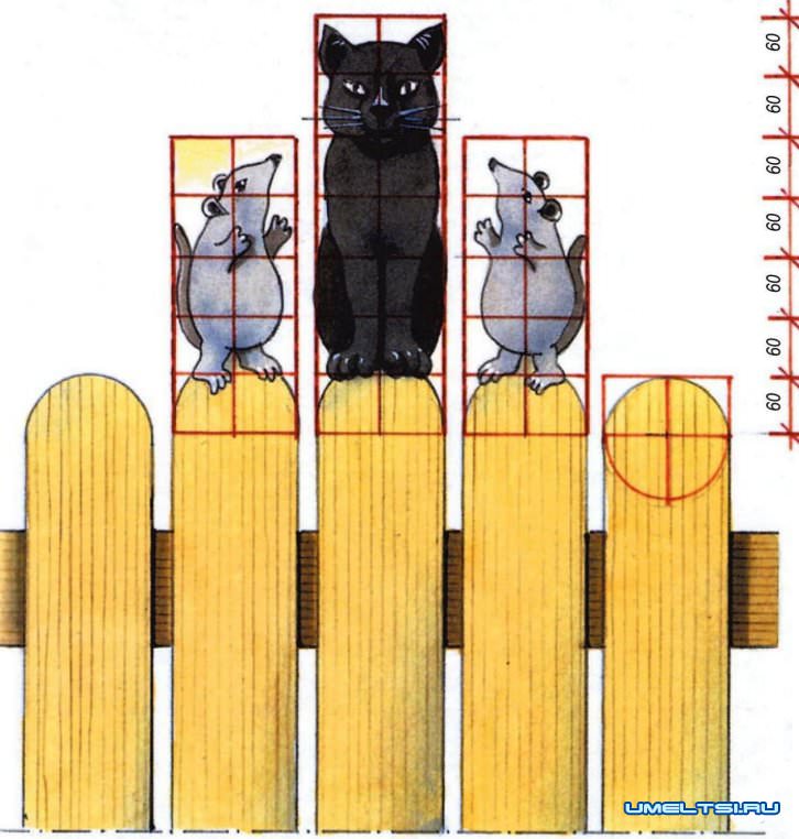 Да, на верхушках штакетин изгороди это вполне возможно. Фигурки можно либо прикрутить к верхней поперечной перекладине (как на фото), либо — и это более надёжно — выпилить по контуру из досок штакетника. Для этого выбирают заготовки одинаковой толщины, но несколько большей, чем требуется, длины. Перед выпиливанием надо сделать шаблон из бумаги. По такому же принципу на заборе можно «поселить» сову и зайца, да и ещё многих забавных персонажей. Необходимо лишь учитывать, что шаблон должен быть несложным — иначе слишком тонкие детали (уши, лапки) могут сломаться.