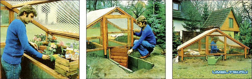 Ухаживать за растениями в данной тепличке с углубленным проходом довольно таки удобен — все процессы делаются стоя во весь рост, не нужно наклоняться и напрягать спину, как при положении растений на высоте дорожки и зимой намного меньше необходимо отапливать.