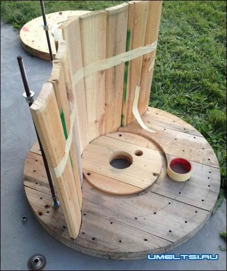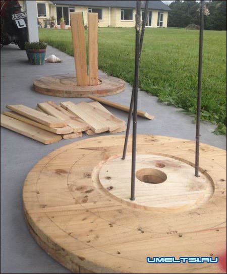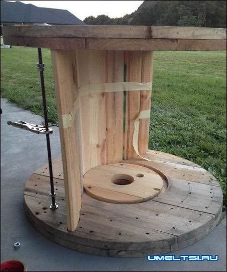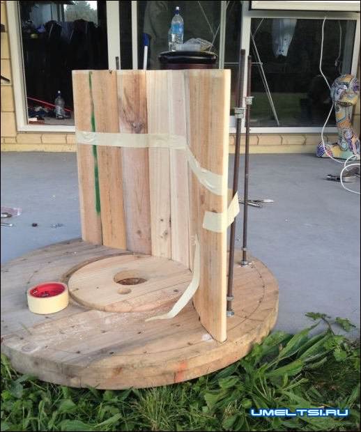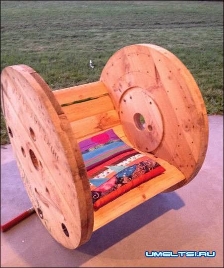 После проведенного дня на дачном огороде или работ в саду всегда есть желание отдохнуть в укромном месте. Это может быть беседка, садовые качели либо скамейки. Сегодня мы вам предлагаем сделать из деревянного барабана для кабеля кресло качалку. На таком кресле отлично отдохнете после трудового дня.