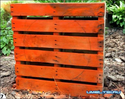 Если вы хотите, чтобы изделия из поддонов прослужили дольше, мы советуем перед началом каждого дачного сезона производить новую окраску вашего творения. Это не дает древесине быстро сгнить.