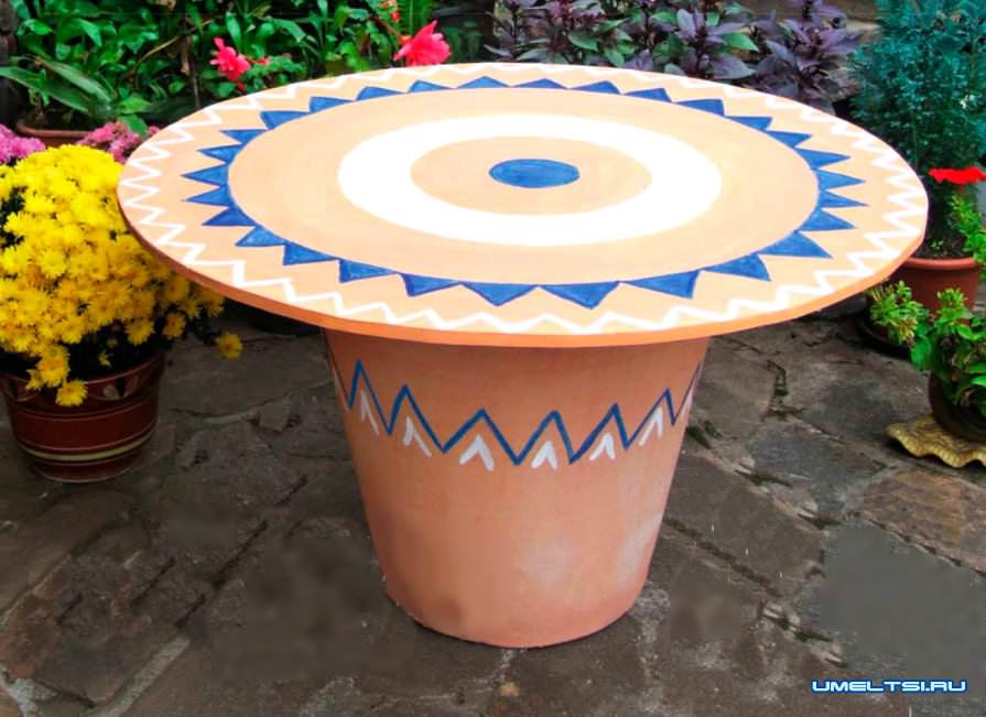 Это настоящий эксклюзив: ну где и у кого еще в саду вы увидите керамический... стол? Однако такую оригинальную вещицу вы без труда сможете создать своими руками.