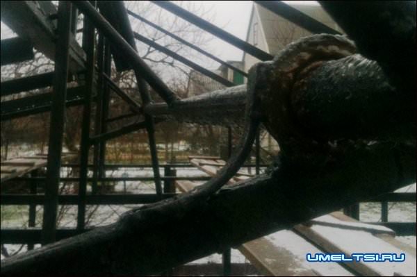 Приступаем к окнам. Делаем раму, размещаем окна, привариваем петли. Собираем все и ввариваем наверх конструкции. Упоры для открывания окон – две небольшие перемычки. Для шарниров используют металлические трубы, сваренные между собой (как на фото). В трубу ввариваются подшипники, которые являются опорой для всего механизма. Для противовеса можно использовать толстые трубы, в которых внутри находится арматура. Тяжелая арматура имеет поджимающий эффект, как при открытом, так и при закрытом окне.