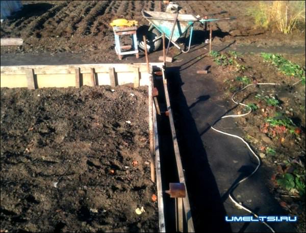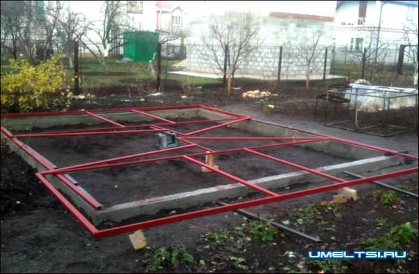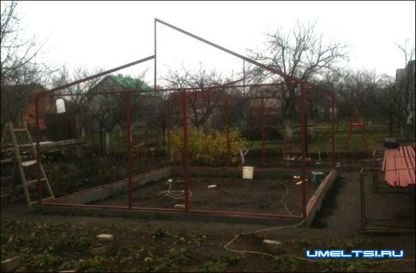 Следующий этап – заливка фундамента. В фундамент необходимо вмонтировать крепления для каркаса. Возьмите прочную арматуру, металлические уголки или другие конструкции из металла. К ним приваривают каркас под парник.