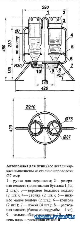 Для тех, кто на своем подворье разводит домашнюю птицу, рекомендую изготовить автопоилку: простую по конструкции, надежную в эксплуатации (в данном случае предусматривается хорошая устойчивость даже при «бесцеремонном» обращении с ней со стороны птиц).