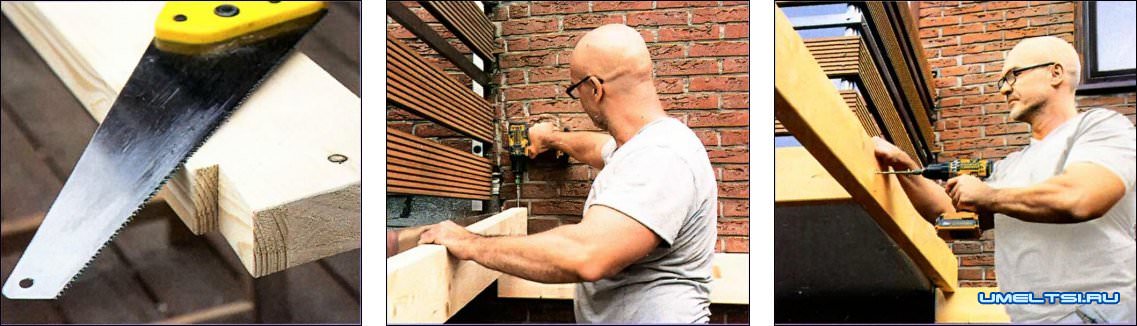 14. Сначала забить дюбели в отверстия так, чтобы они располагались заподлицо с деревом. Затем затянуть аккумуляторным шуруповертом.