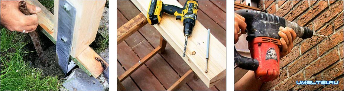 1. Предварительно просверлить оба отверстия для Н-образных анкеров. Для болтов 10 мм лучше взять сверло диаметром 12 мм, это упростит работу.