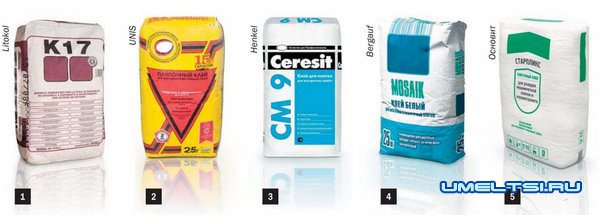 Для внутренних работ на поверхностях без серьезных недостатков подойдет обыкновенная клеевая смесь на основе цемента, песка и химических добавок. Такие продукты обладают средними, но вполне достаточными качествами для приклеивания плитки. Они надежны, устойчивы к сползанию, экологически безопасны, экономичны и недороги. Например, клей Ceresit СМ 9 (240 руб.), UNIS XXI (177 руб.), Perfecta от «Гипсонит» (253руб.).