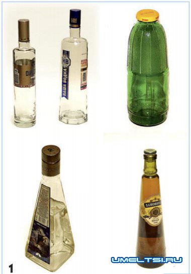 Популярное сырьё для простых поделок — бутылки. За последнее время, я накопил несколько новых бутылок, которые терпеливо ждали своего часа, чтобы их пустили в работу (фото 1).