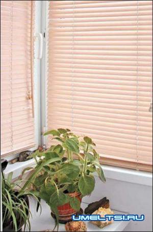 Балкон расположен на юго-восточной стороне дома, причем достаточно высоко, на 22-м этаже, поэтому солнце освещает его очень хорошо. Уменьшить прогрев кабинета в летние месяцы помогают горизонтальные жалюзи с экологичными планками-ламелями из натурального дерева.