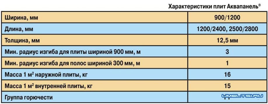 Номенклатура панелей довольно значительна. Их выпускают длиной от 1,2 до 2,8 м и шириной 0,9 и 1,2 м. Внутри зданий аквапанели можно монтировать на металлический или деревянный каркас. Во влажных помещениях предпочтительней использовать стальные оцинкованные профили.