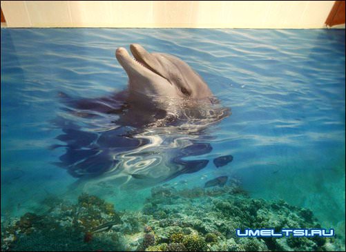 Художественная роспись весьма дорогое удовольствие и увеличивает стоимость пола в разы. Использование готового изображения упрощает и удешевляет процесс. Но просто распечатать фотографию в большем формате недостаточно, рисунок получится плоский и невыразительный. Помните, что существует особая техника объемных крупных изображений. В художественных мастерских вам помогут выбрать такое изображение и перенесут его на виниловую пленку.