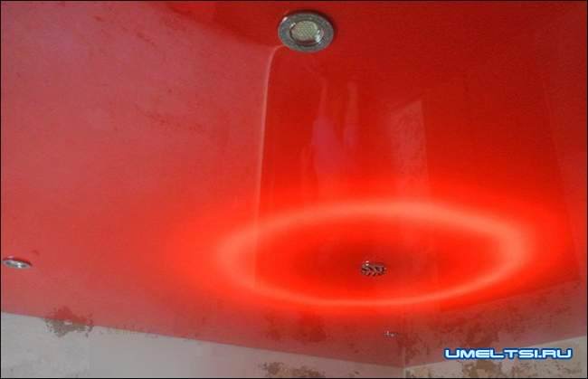 Для декоративной подсветки в металлопрофиль вставили неоновую ленту. Которая также будет под полотном.