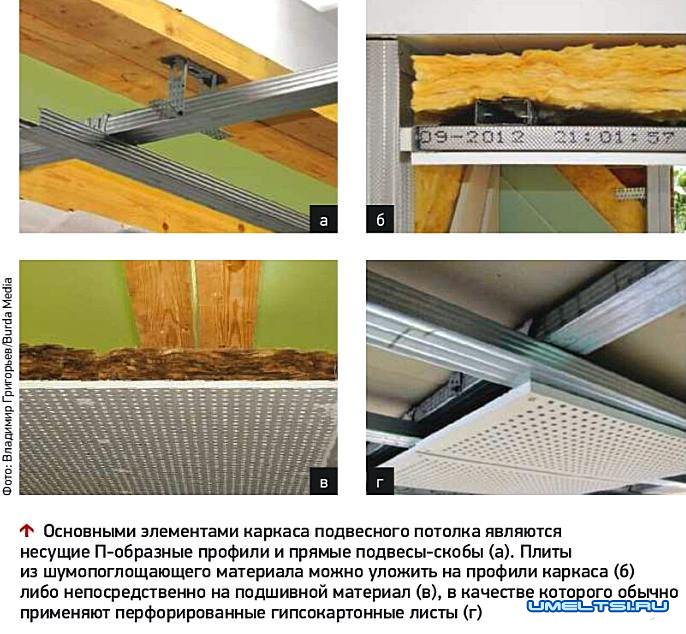 Без металлического подвесного каркаса не обойтись и при установке перфорированных панелей (гипсокартонных, древесно-волокнистых). Сами по себе они способны гасить эхо лишь в узком частотном диапазоне, но зато над ними, на профилях каркаса, можно расположить высокоэффективные шумо-поглощающие минераловатные маты толщиной 50-100 мм, например «ЗвукоЗащита» («Сен-Гобен Isover»), «Акустик Баттс» (Rockwool), «Шуманет-БМ» (Acoustic Group). Подобная конструкция является не только акустической, но и звукоизолирующей: в комнате, где она установлена, прибавка звукоизоляции составит 4-8 дБ, а в расположенной этажом выше — не менее 10 дБ. А если монтировать каркас с помощью вибродемпфирующих креплений, то такой потолок будет защищать не только от воздушных, но и от ударных и структурных шумов.