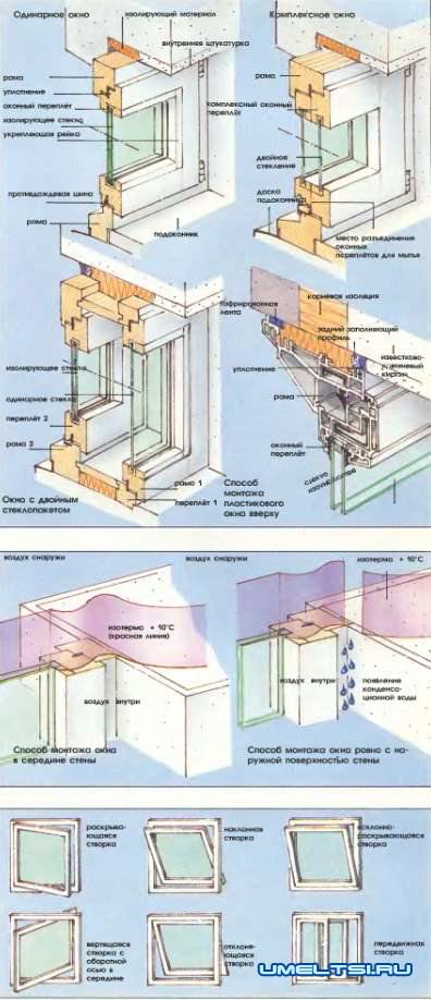 Способ и направление движения оконного переплёта показаны на рисунках внизу. Из этих примеров вытекает, что не всегда то, что практично, может считаться красивым.