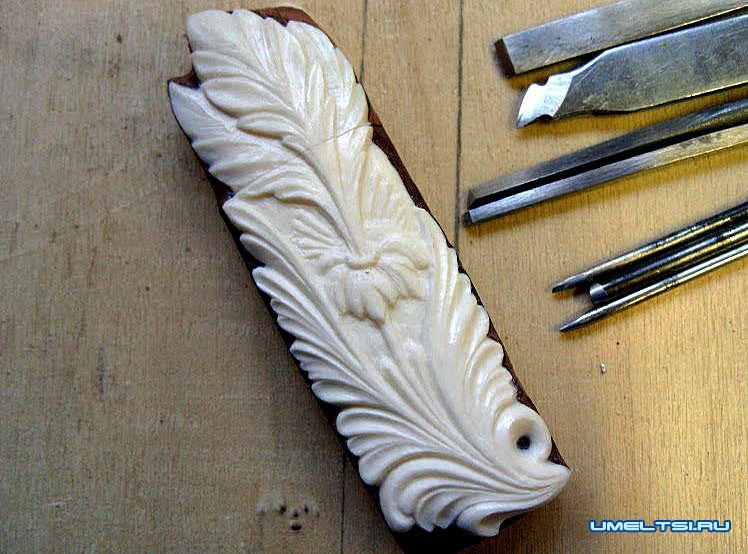 Оптимальный вариант — работать по приготовленному заранее эскизу. Я, например, рисую на заготовке картинку и делаю ее фото, чтобы потом можно было восстановить некоторые элементы. Хотя, признаюсь, нередко бывает так, что я отступаю от первоначальной идеи. Как-никак, резьба — процесс творческий, и работа сама диктует, как должно выглядеть изделие.