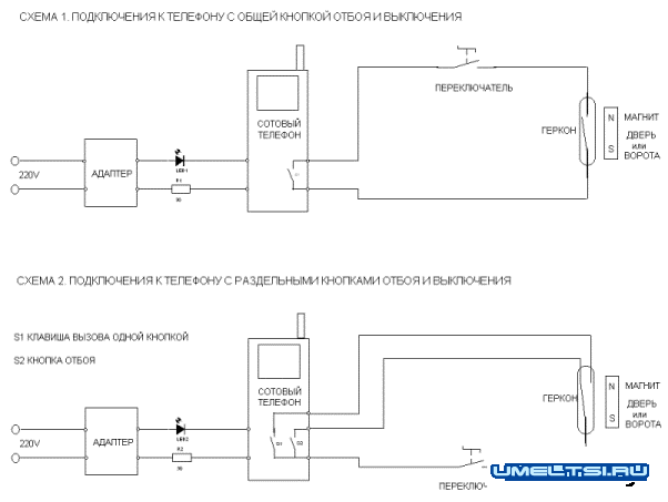 Для мобильника с отбоем а также выключением на единой клавише применяйте схему 1 с хорошо сомкнутым герконом, это немаловажно.