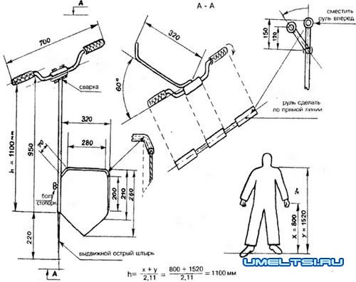 Таким образом я определил высоту чудо-лопаты - от руля (верхней части) к режущей части (внизу лопату заточил).