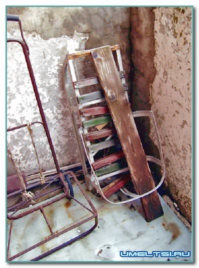 Придать обычным санкам вышеперечисленные вездеходные качества сможет любой (даже начинающий) самодельщик. Достаточно лишь обрезать полозья до задних стоек, на которые приходится основная часть нагрузки, и надежно закрепить (например, хомутами или сваркой) на этих стойках ось колесной пары. Последнюю в сборе с колесами желательно взять готовой, от хозяйственной сумки-коляски или детского велосипеда.