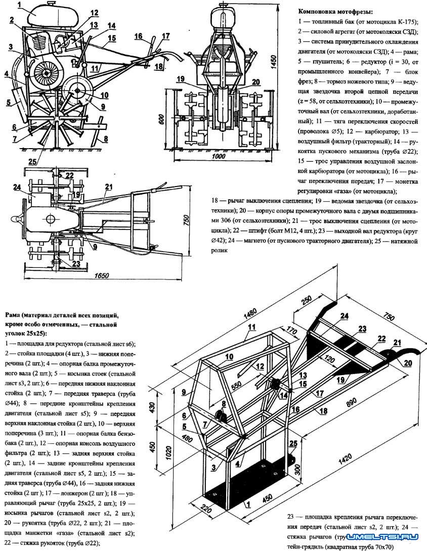 Чтобы читатели не судили строго творение моих рук, скажу, что хотя и вынашивал я эту идею несколько лет, сделал мотофрезу буквально за несколько недель, перед началом весенней страды, из того, что имелось под руками. Сразу же после изготовления мотофрезу испытал: выполнил с ее помощью весь необходимый объем работ. И хотя мне и самому кое-что не нравилось во внешнем виде машины, переделывать ничего не стал, посчитав, что главное в ней все-таки надежность и производительность, а не привлекательность.