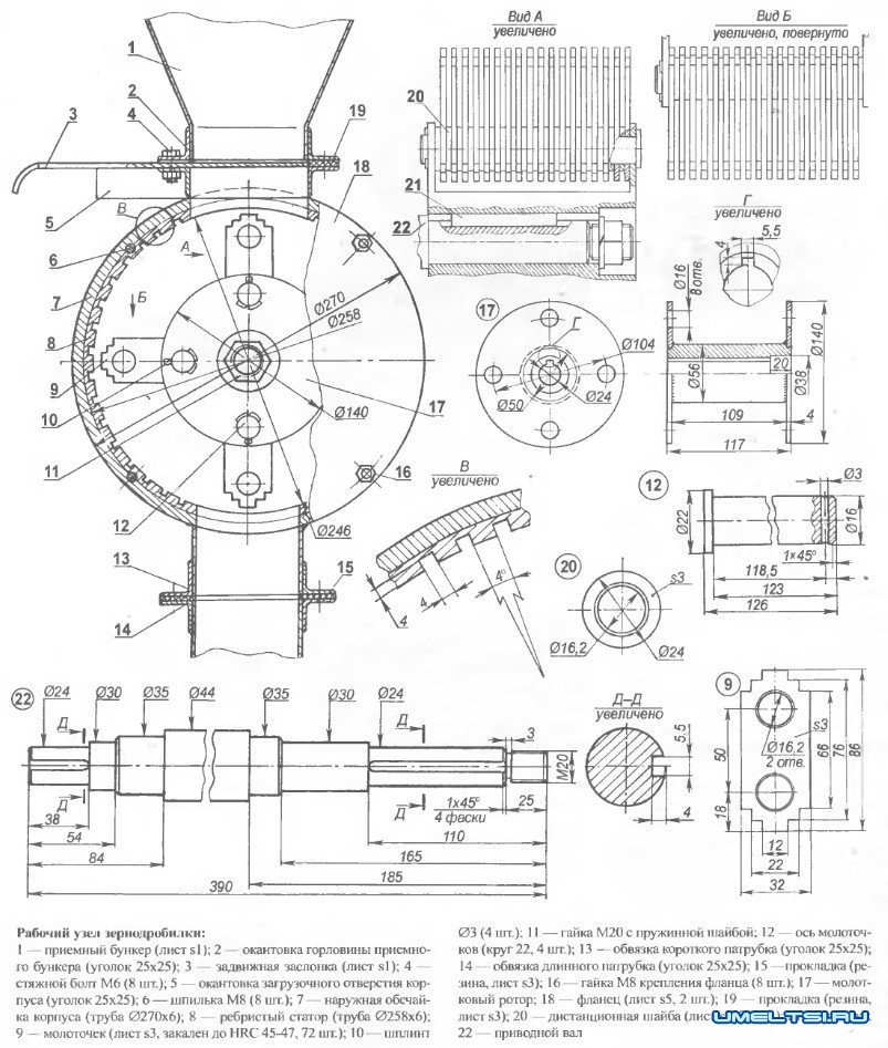 В заключение отмечу, что во многом благодаря простоте конструкции зернодробилки в ней я измельчаю любые сухие вещества для приготовления кормовых смесей — от сена до жмыха.