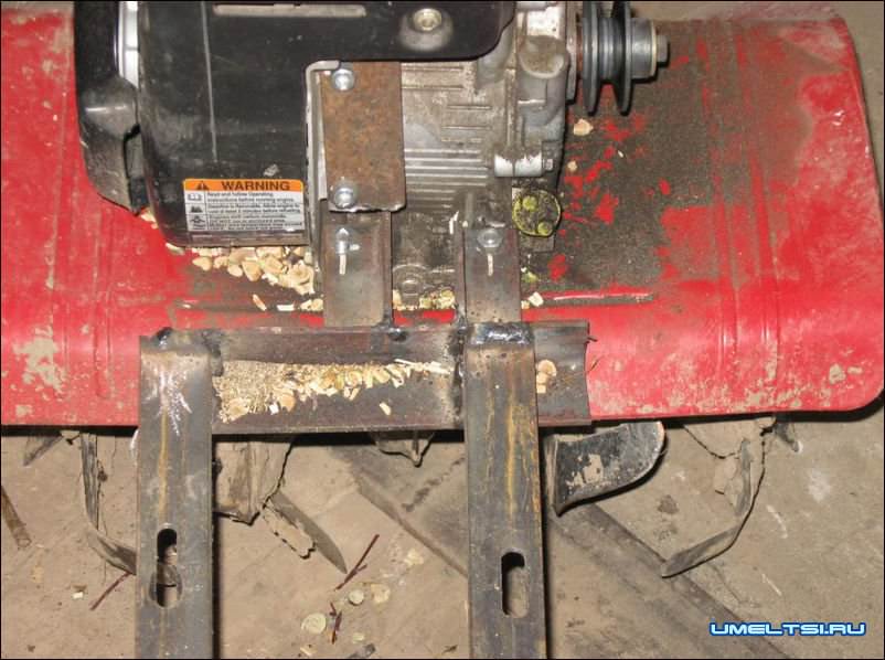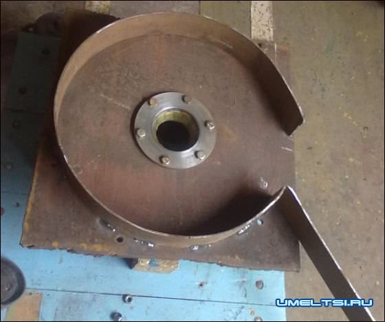 Материалом для изготовления мотоблочного измельчителя будет служить швеллер 250. Дополнительно потребуется шкив сечением 87 миллиметров, и ножи длиной 100 миллиметров от электрорубанка. Необходимо соорудить приемный бункер, в который и будут загружаться разнообразные ветки. Бункер оснащается неподвижным острым дисковым ножом, который и будет измельчать ветки. Лучше брать диски диаметром примерно 80 мм. Диск крепится на болты М8. Таким образом, ножи не будут постоянно забиваться мелкой трухой при переработке дерева.