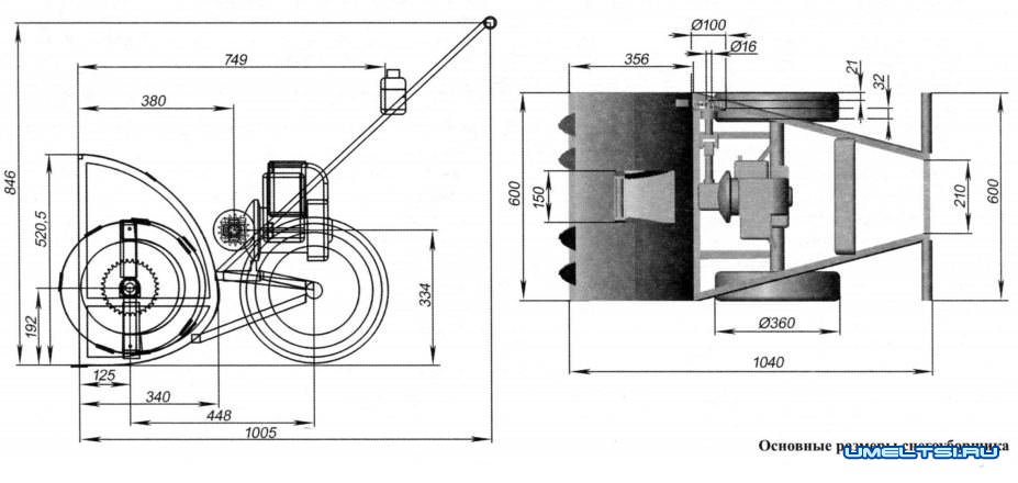 Ещё я старался использовать минимум точёных деталей, недефицитные материалы и запчасти. В результате снегоуборщик получился весьма недорогой и несложный в изготовлении.