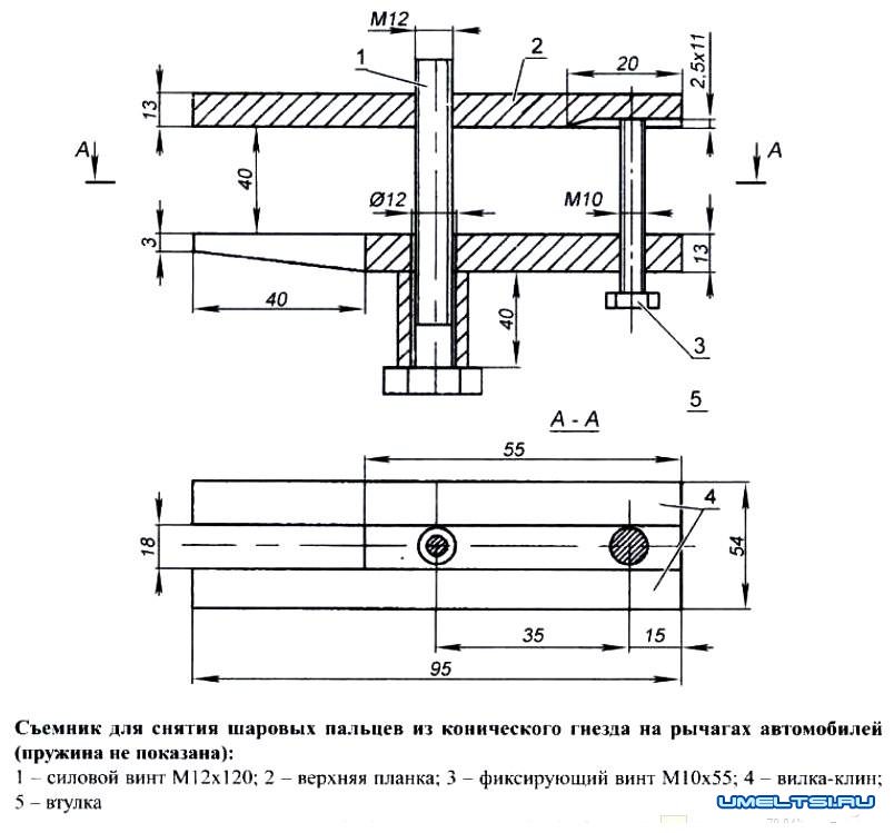 С помощью предлагаемых вниманию читателей самодельных приспособлений можно извлекать пальцы шаровых опор из конических отверстий рычагов и тяг без повреждений деталей. Причем съемники почти универсальные и пригодны для ремонта соответствующих (да и других) узлов большинства автомобилей. и не только легковых.