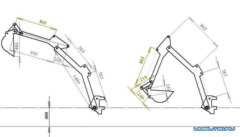 Для большей функциональности мини-экскаватора стоит на передней части ковша с помощью сварки расположить высокопрочные «клыки» – для этого отлично подойдут «пальцы» гусеничного трактора.