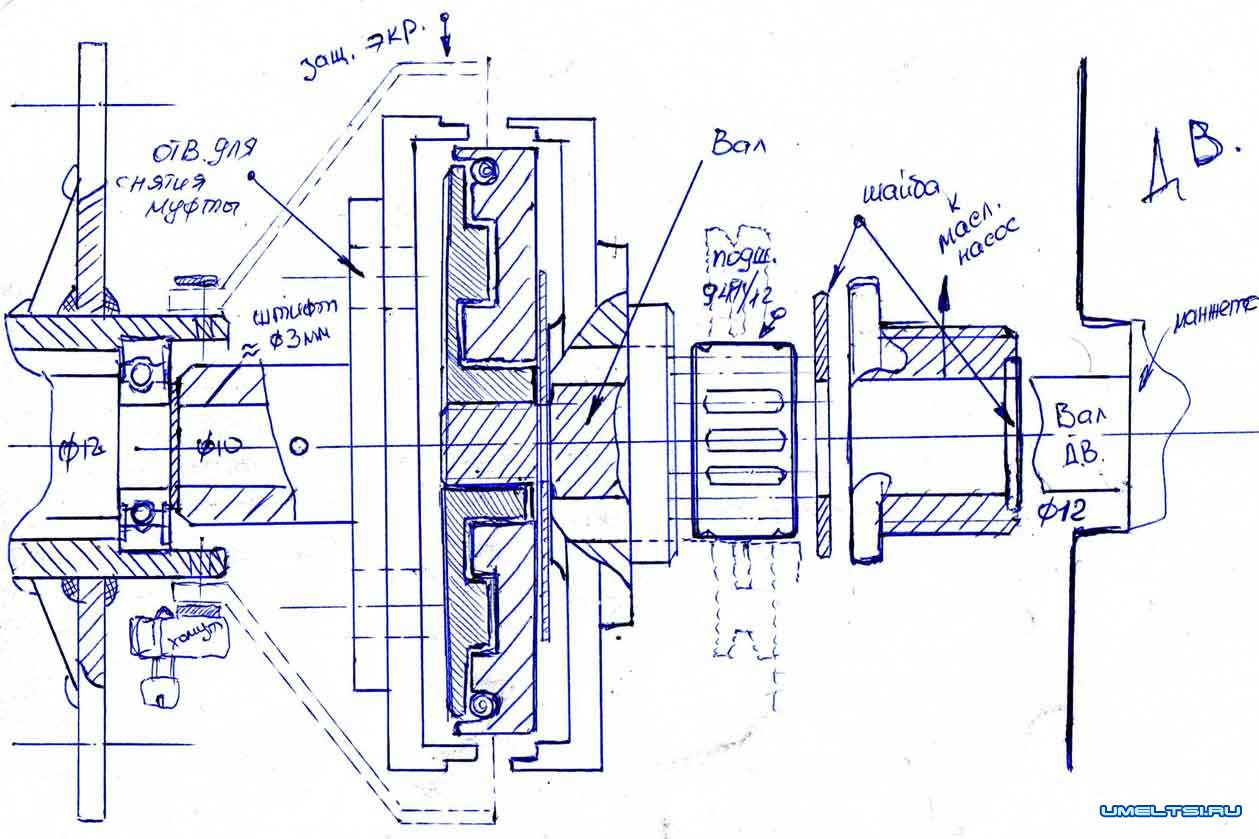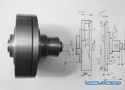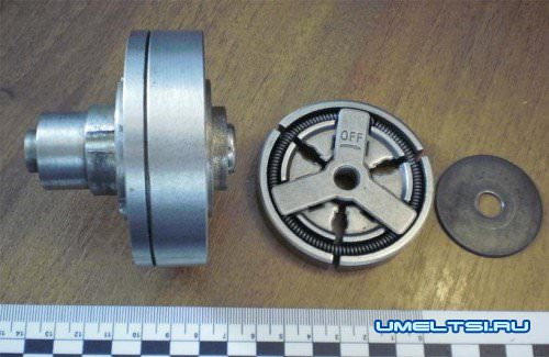 Для начала необходимо переделать муфту: выточка новой меньшей чашки и замена стягивающей пружины, это необходимо для того, что бы снизить начальный момент сцепления ну и конечно же размеры - массу. Был куплен 941\12 роликовый подшипник. + два подш.7000CD на трубу + вал=510 мм + соед. муфта.