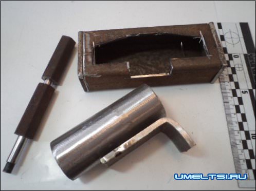 Далее делаем поворотный узел. Нам понадобятся такие детали (см. фото). Последовательность работ указано ниже.
