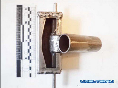 Обрезав болгаркой лишние части швеллера, высверливаем отверстие под крепление к бензопилки. Что получилось смотрим фото.