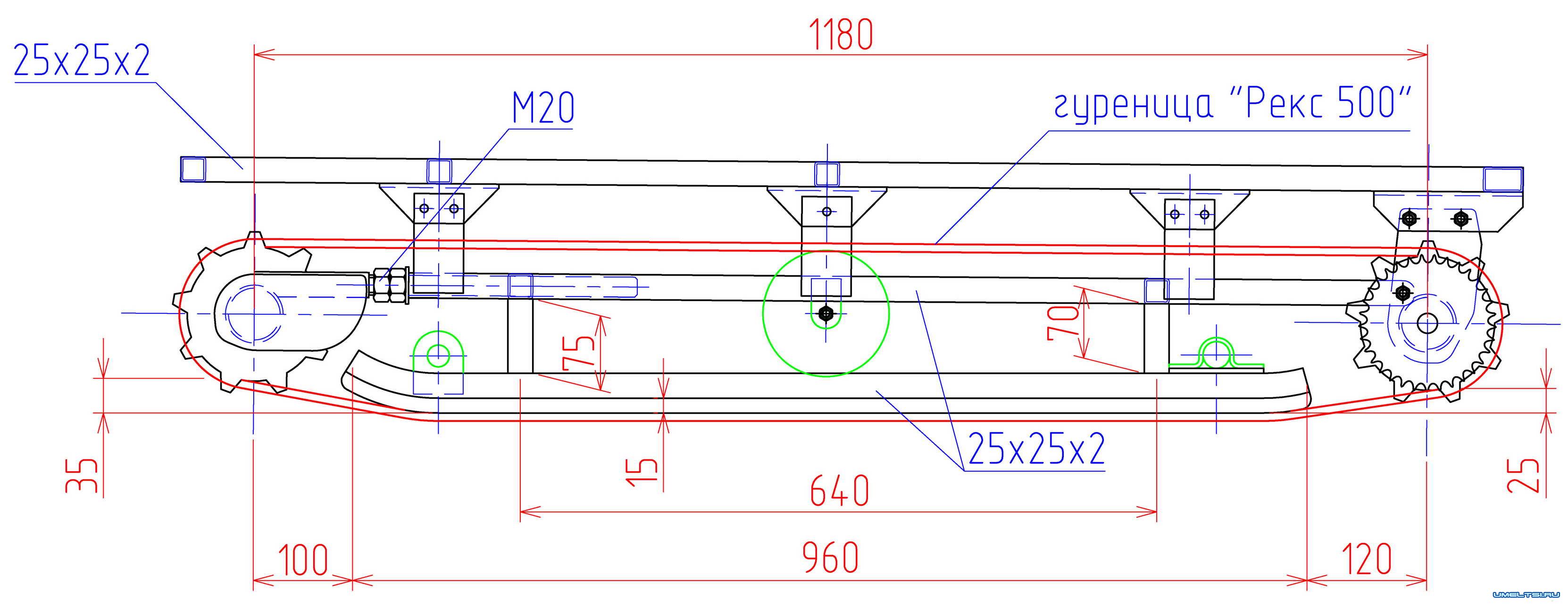Собираем гусеничный движитель, используя транспортерную ленту.