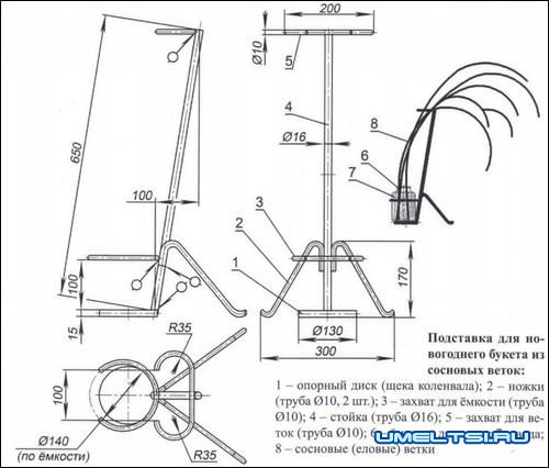 Сходить за ветками до ближайшей опушки соснового бора труда не составит, даже перед самым Новым годом. А вот специальную подставку для них желательно сделать заранее! Но какую? Для ёлок пришлось раньше делать много разных: от простого деревянного «креста» до замысловатых сварных конструкций с ёмкостями под воду для длительного хранения лесной красавицы в первозданном состоянии. А вот для букета из сосновых веток до сей поры мастерить не приходилось.