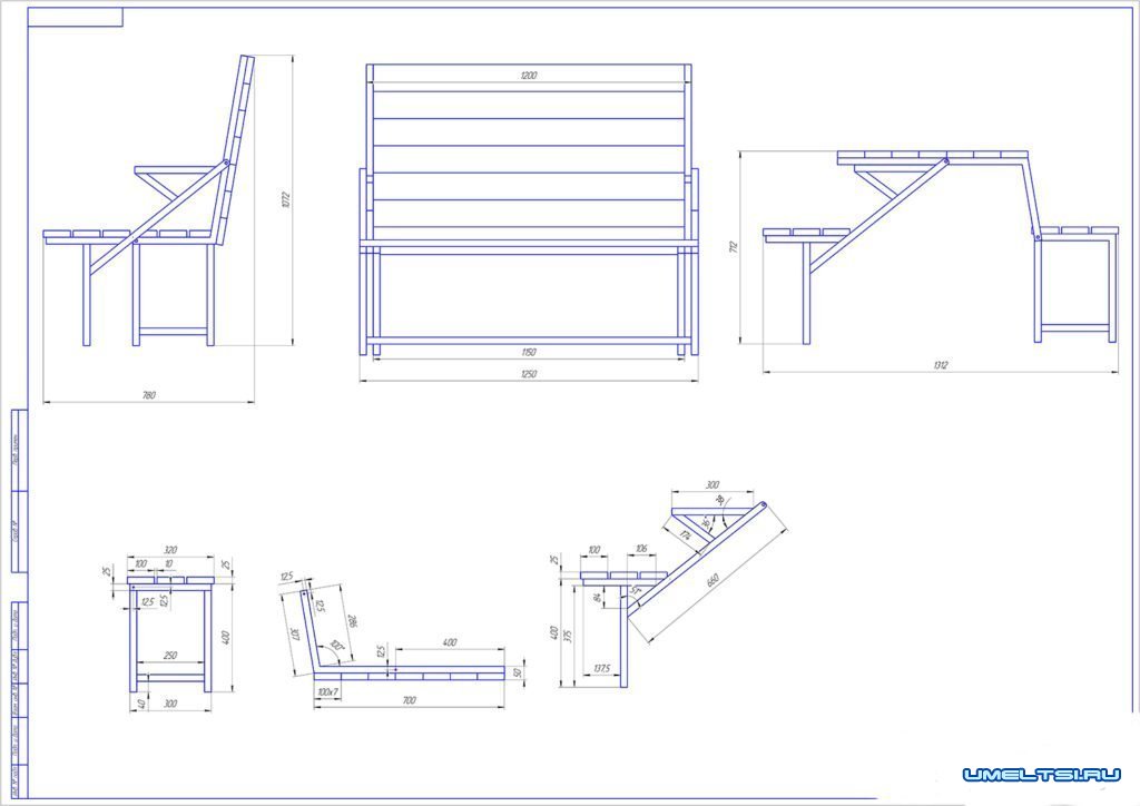 Вдохновленный идеей, подсказанной вашим сайтом, собрал по своему варианту скамейку-трансформер, основой послужили профильные трубы. Как воплотил свою идею в жизнь смотрим далее.