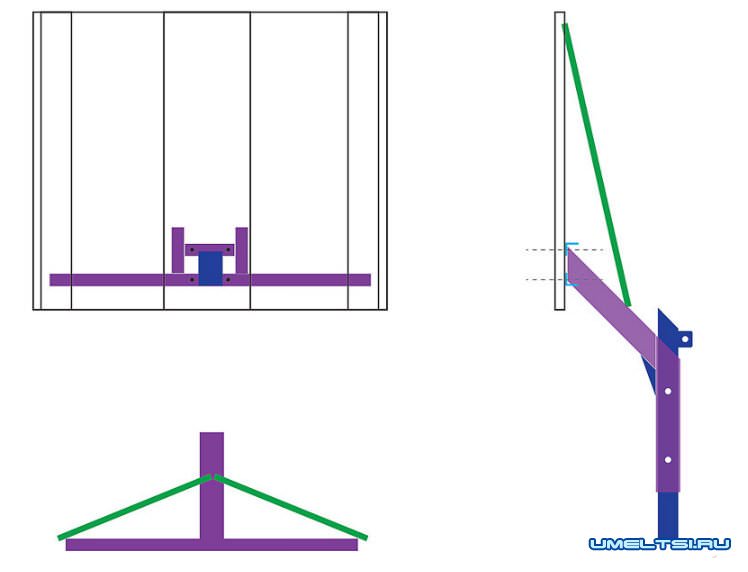 Первым делом сделаем чертеж щита, крепление к нему и столб куда он будет прикреплен.
