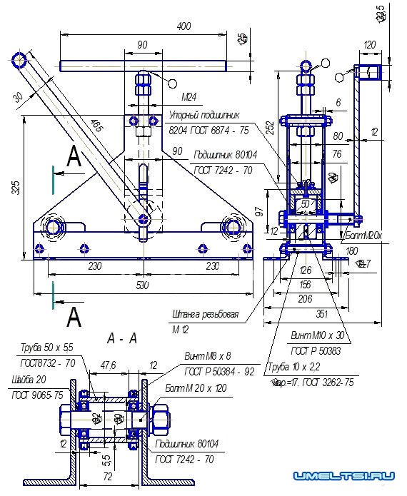 4. Чертежи, размеры самодельного трубогиба