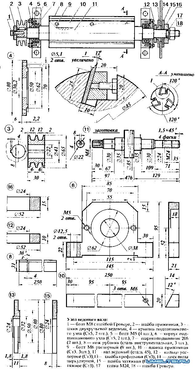 Но все это требует аккуратности. И, конечно же, строжайшего, неукоснительного соблюдения правил техники безопасности. В частности, при установке вала на раму станины его необходимо жестко, без перекоса закрепить. Затянув болты вначале на одной опоре, убедиться, что другая не поднялась над рамой и не оказалась чрезмерно прижатой к ней. Затем нужно с такой же предосторожностью подойти к затяжке болтов на второй опоре. Перекос устранять тут же, подкладывая под опоры металлические прокладки. В подшипники необходимо набить тугоплавкую смазку. Проследить, чтобы в них ни в коем случае не попадали опилки, стружка.