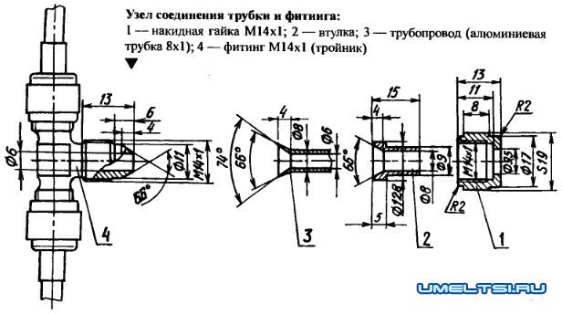 Трубопроводы, соединяющие компрессор с ресивером и раздаточной коробкой — алюминиевые с проходным диаметром 6 мм. Соединения трубопроводов с механизмами — при помощи стандартных авиационных штуцеров, угольников, тройников и накидных гаек со втулками.