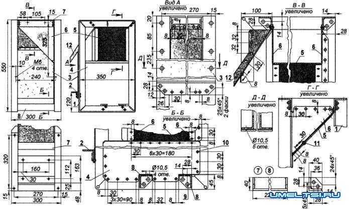 Материал силовых деталей (балок, стоек, ригелей) — в основном сортовой стальной прокат. Он немного утяжеляет станок, но значительно упрощает его изготовление.