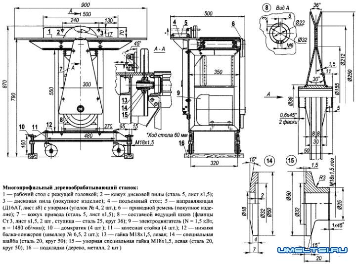 Чертежи и схемы циркулярного деревообрабатывающего станка