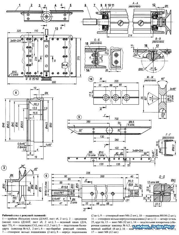 Большинство деталей и узлов доступны для изготовления своими руками в условиях домашней мастерской. Однако некоторые узлы, например режущую головку, лучше заказать специалистам.