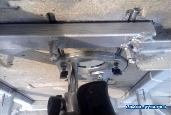 На фрезерном столе было изготовлено держатели. Было приварено по 2 гайки и удлинители М5 к каждой из них. В сами гайки заставляются болты М5. Это помогло более точно выровнять плоскость подошвы в столе.