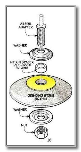 С рисунка видно что ножи легко перемещать в плоскосте,что дает нам в преимущество в более тонкой заточке.Сам мханизм делаеться с метала а сам корпус можна и из дерева.Все крепиться на свердлильном верстате,песле заточки можна легко убрать.Принцып крипежа абразива показан на рисунку.