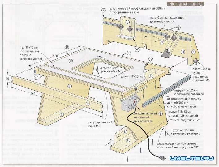 4. Выпилите по указанным размерам стопорные блоки О и просверлите в центре отверстия диаметром 7 мм. Отшлифуйте стопориые блоки наждачной бумагой зернистостью 220 единиц.