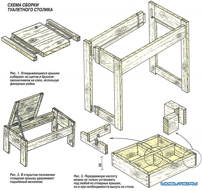 В случае когда вы ранее получили столярные навыки и приемлемо знаете приёмы работ с ручными инструментами, конечная цель по созданию этой полезной в быту мебели станет выполнимой. Последовательность работ такая.