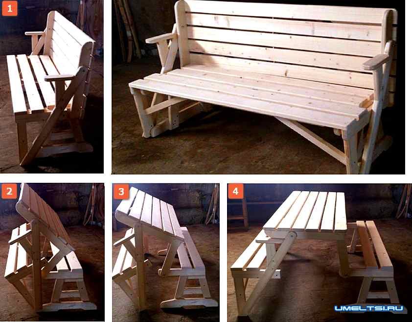 Скамейка-стол трансформер своими руками: размеры, примеры