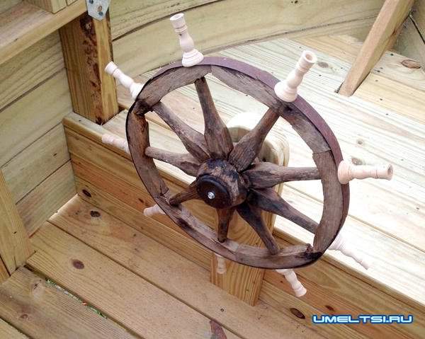 10. Колесо от телеги или повозки будет служить штурвалом для капитана.