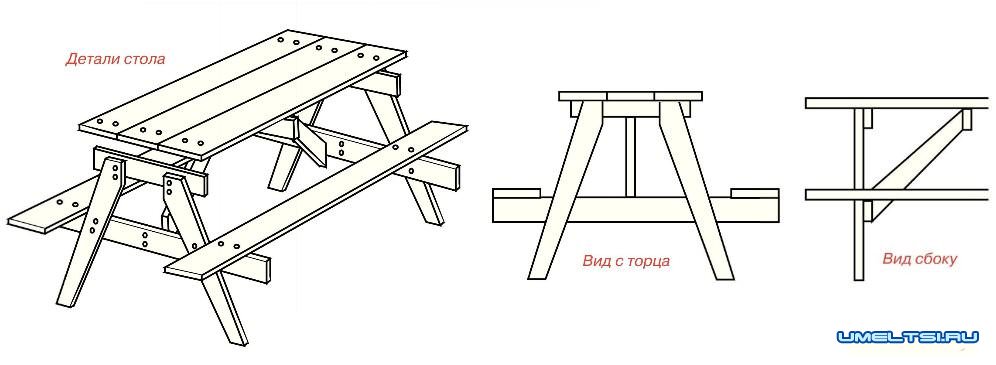 Для посиделок в семейном кругу и с друзьями смастерил компактную обеденную группу. Ее можно установить в любом месте под открытым небом, на террасе или в беседке, а прочность конструкции обеспечит комфортный отдых.