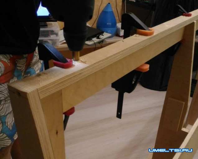 Далее предстояло выполнить самую сложную операцию – собрать каркас кровати и механизм подъема в единую конструкцию. В этом мне помогли двое моих друзей. Работа выполнялась в соответствии со следующими пунктами.